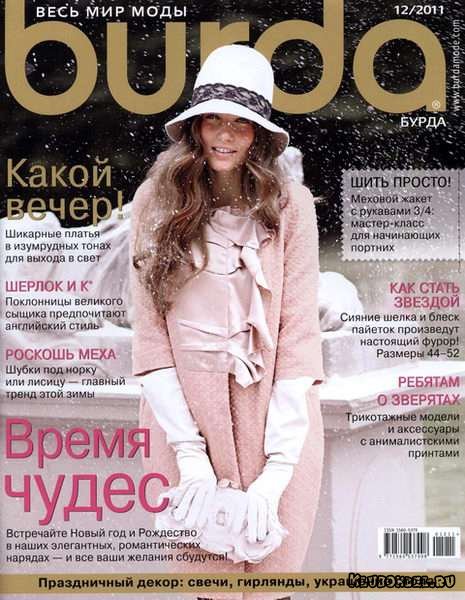 Burda №12 (декабрь 2011) + выкройкиBurda №12 — высококлассная европейская мода с мировым именем. Женщины, которые хотят быть образцом безупречного вкуса, хорошо знакомы с издательством Burda. На страницах журнала Burda — последние новости с европейских подиумов и тенденции мировой моды, модные торговые марки, советы по стилю. В новом номере журнала Burda вы найдете шикарные вечерние платья в изумрудных тонах , шубки под лисицу или норку, трикотажные модели и аксессуары с анималистскими принтами и много других моделей. Встречайте Новый год и Рождество в романтических, элегантных нарядах журнала Burda №12 и все ваши желания сбудутся! Название: Burda Номер: 12 / декабрь Качество: высокое Страниц: 118 + выкройки Формат: PDF + JPG Язык: русский Размер: 188 МБ Скачать бесплатно с turbobit.net Скачать бесплатно с Narod.ru Ссылки на файлы предоставлены исключительно для ознакомления. Все права принадлежат авторам файлов. ![]() ![]() Похожие статьи: